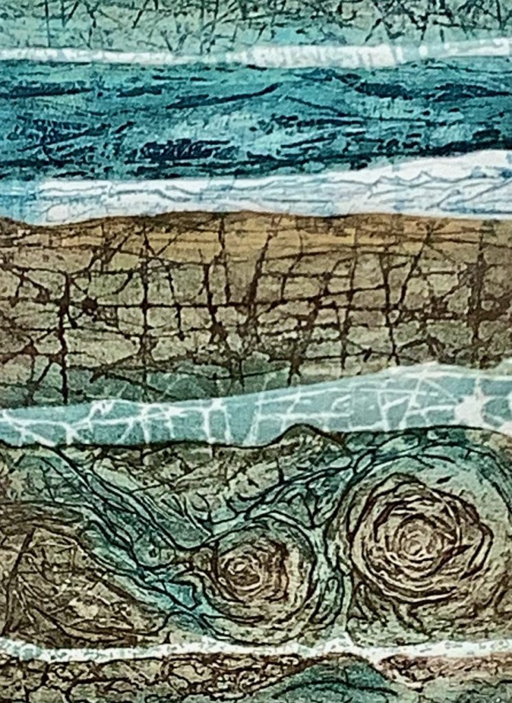 Collagraph is a process of printing from textured plates, created through collage and other additive and subtractive techniques. It is a playful, experimental process employing natural or common household and recycled materials.