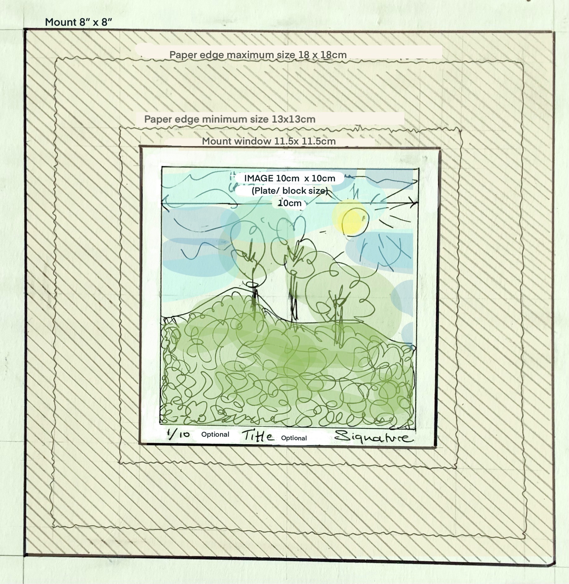 Prints to be exhibited should be 10cm x 10cm or less (image size), on paper 13 x 13cm to 18cm x 18cm, suitable for mounting within the above parameters.